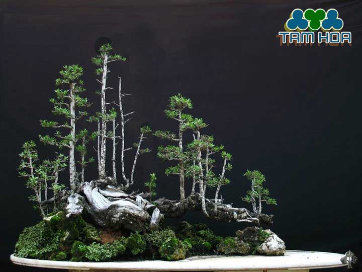 Cây thủy sinh nên sử dụng loại cây có kích thước nhỏ, ưa nước và đặt bố trí rải rác trên các hòn núi và trong chậu. Điều này giúp tạo điểm nhấn, cũng như có tác dụng bổ trợ sinh khí, điều hòa các yếu tố phong thủy. Sau đó dùng bông gòn và các giải thể (đất) dưới gốc cây nhằm tạo thêm sự vững chãi, giúp cây sinh trưởng tốt.